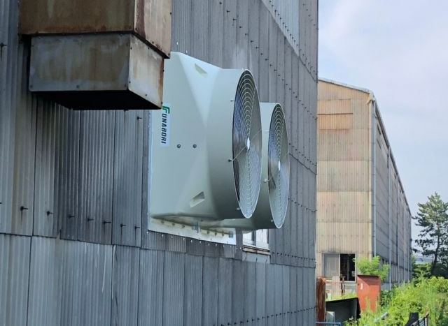 主に工場や倉庫、畜舎などの大空間に使用され、大量の空気を短時間で入れ替えることができます。